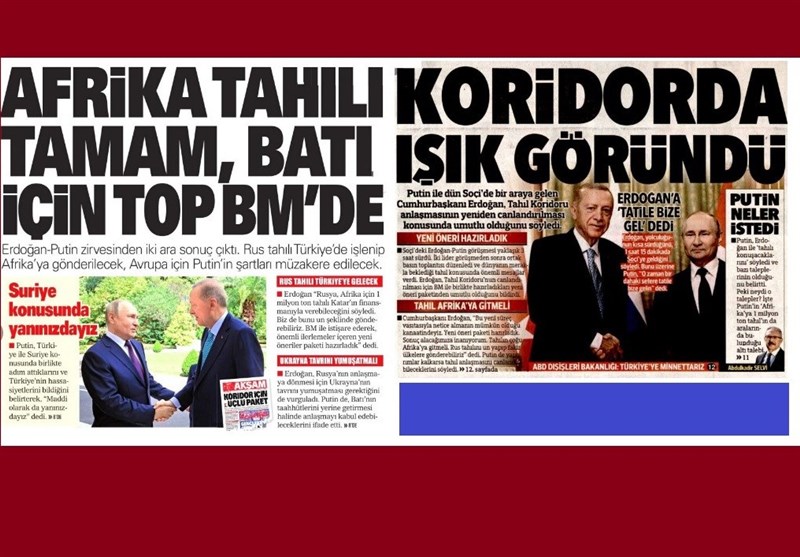 ترکیه و قطر در جریان مذاکرات دیپلماتیک سعی دارند تا قرارداد جدیدی برای تسهیل صادرات 33 میلیون تن مواد غذایی از طریق دریای سیاه فراهم کنند. همچنین در این طرح قطر از روند صادرات غلات به کشورهای آفریقایی حمایت مالی خواهد کرد و ترکیه به سازماندهی این امر کمک خواهد نمود. برای اجرایی شدن این طرح سازمان ملل سازوکار پرداخت مالی پیشنهاد کرده بود که البته با موافقت مسکو همراه نشد. هاکان فیدان در جریان سفر به مسکو و دیدار با لاوروف به دنبال فراهم کردن مقدمات امضا این توافق بود اما توفیقی به دست نیاورد. با آنکه اردوغان بسیار امیدوار بود تا در جریان دیدار با پوتین بتواند دست آورد جدیدی در حوزه سیاست خارجی به دست آورد اما در این زمینه توفیقی نیافت. طرف روس با اشاره به تحریم صادرات این کشور از سوی غرب، هرگونه توافق جدید غلات را تا زمان رفع تحریمهای غرب دور از دسترس دانست.
